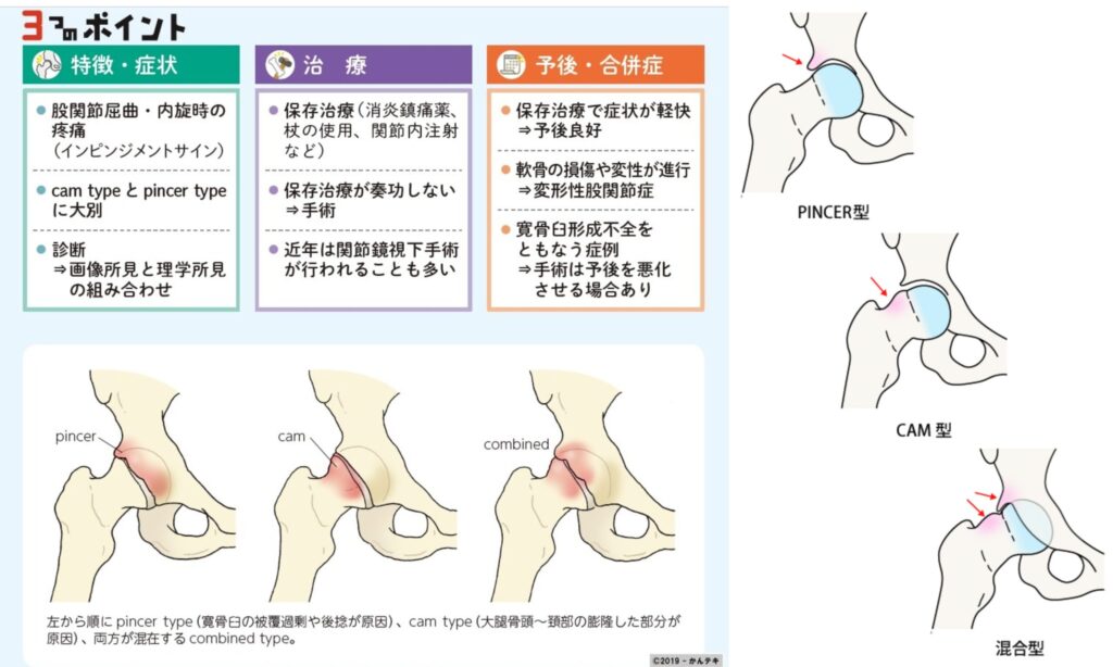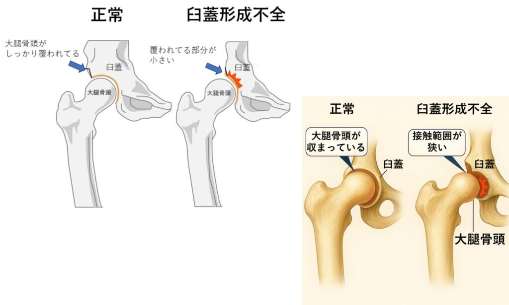 ・ピンサータイプ:臼蓋(受け皿)が過剰に深い→ 大腿骨を包み込みすぎてぶつかる