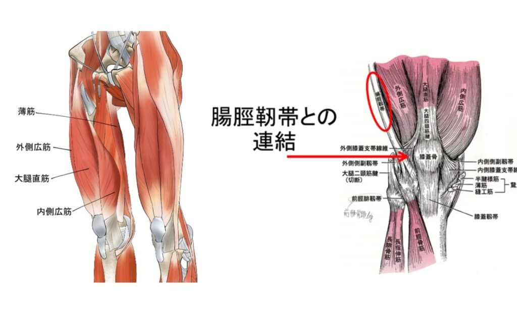 TFL → 腸脛靭帯 → 外側広筋と筋膜連結