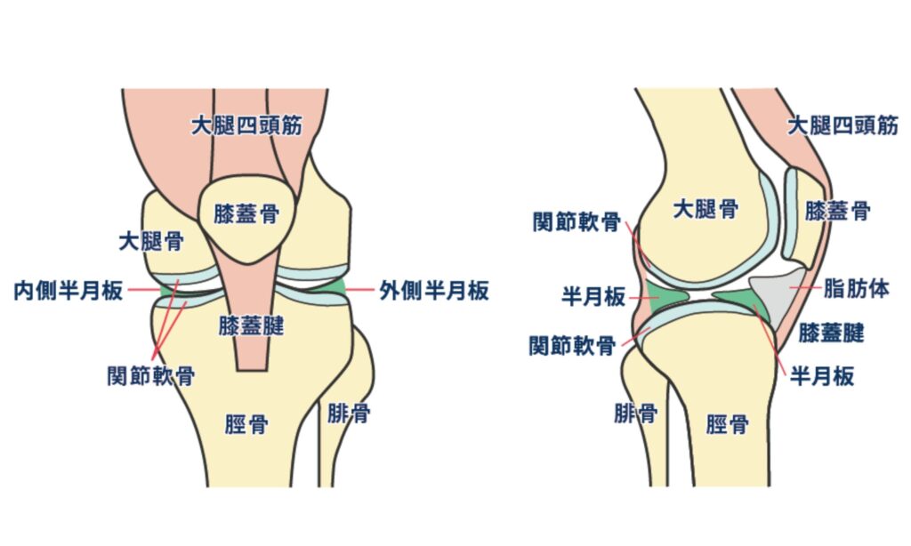 | 前十字靭帯 | 膝の中央・前方移動を防ぐ | ジャンプ着地や方向転換で損傷。膝が「ガクッ」と崩れる。 |